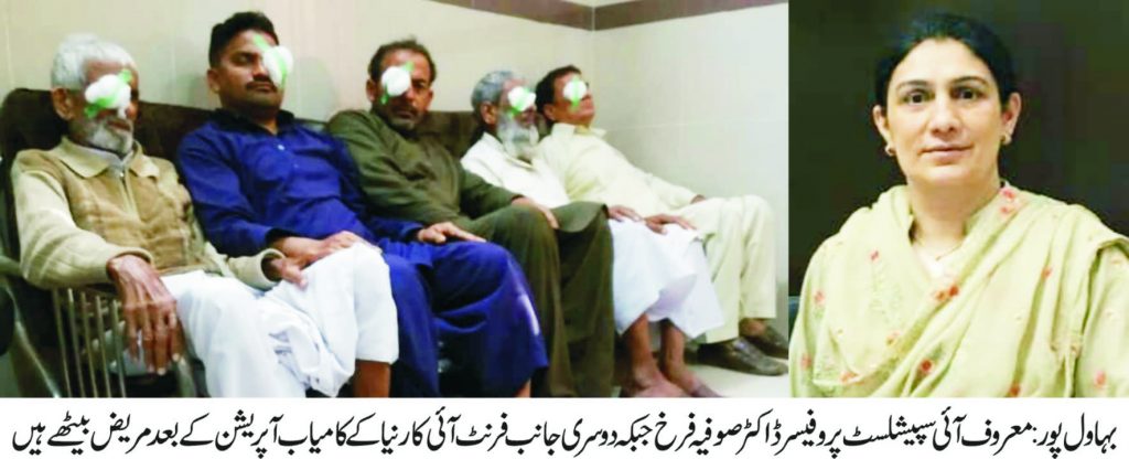 بہاول وکٹوریہ ہسپتال کے شعبہ امراض چشم میں فرنٹ آئی کارنیا کا کامیاب آپریشن امراض چشم کے موثر علاج کی جانب اہم طبی پیش رفت ہے جس سے امراض چشم کے مریضوں کو مقامی سطح پر ہی علاج معالجہ کی سہولیات میسر ہوں گی اور انہیں علاج معالجہ کے لئے دور دراز کا سفر طے کر کے دوسرے شہروں میں نہیں جانا پڑے گا۔یہ آپریشن پاکستان کی معروف آئی سپیشلسٹ پروفیسر ڈاکٹر صوفیہ فرخ نے سرانجام دیا ہے۔ ڈاکٹر صوفیہ فرخ نے اس موقع پر اظہار خیال کرتے ہوئے کہا کہ فرنٹ کارنیا کی سرجری کا آغاز قائد اعظم میڈیکل کالج کی شاندار اور قابل فخر روایات کا تسلسل ہے۔انہوں نے اس کامیاب آپریشن میں شریک میڈیکل ٹیم کے شرکاء کے تعاون کے لئے ان کا شکریہ ادا کیا۔