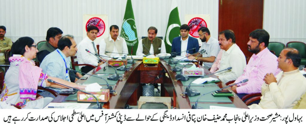بہاول پور (اُمیدیں ٹائمز) مشیر صحت وزیر اعلیٰ پنجاب محمد حنیف خان پتافی کی زیر صدارت ڈپٹی کمشنر بہاول پور کے دفتر میں ڈینگی کے حوالہ سے ایک اعلیٰ سطحی اجلاس منعقد ہوا۔ اجلاس میں ڈپٹی کمشنر بہاول پور شوذب سعید، ڈائریکٹر ہیلتھ سروسز ڈاکٹر ظفر اقبال، چیف ایگزیکٹیو آفیسر ڈسٹرکٹ ہیلتھ اتھارٹی ڈاکٹر غلام یٰسین صابر، ایڈیشنل میڈیکل سپرنٹنڈنٹ ڈاکٹر حامد، ڈائریکٹر ایمرجنسی بی وی ایچ و فوکل پرسن ڈینگی ڈاکٹر عامر بخاری ودیگر محکموں کے سربراہان شریک تھے۔ اجلاس میں بتایا گیا کہ بہاول وکٹوریہ ہسپتال میں 72ڈینگی کے مریضوں کا کامیاب علاج معالجہ کیا گیا ہے جبکہ 25بستروں پر مشتمل ڈینگی وارڈ میں ہمہ قسم سہولیات دستیاب ہیں اور وارڈ کی استعداد کار میں اضافہ ضرورت کے مطابق کیا جا سکتا ہے۔ اجلاس کو بتایا گیا کہ ڈینگی وارڈ میں 14مریض زیر علاج ہیں جن کو تمام طبی و تشخیصی سہولیات مفت فراہم کی جا رہی ہیں۔ مشیر صحت وزیر اعلیٰ پنجاب حنیف خان پتافی نے کہا کہ انسداد ڈینگی اقدامات و مانیٹرنگ کا آغاز اپنے اپنے دفاتر سے کیا جائے۔انہوں نے کہا کہ ڈینگی نے وبا کی شکل غلط رپورٹنگ کی وجہ سے اختیار کی ہے۔انہوں نے کہا کہ مانیٹرنگ اور رپورٹنگ کے عمل کو فول پروف بنایا جائے۔ انہوں نے کہا کہ حکومت پنجاب ڈینگی کے خاتمہ و کنٹرول کے لئے ٹھوس اور موثر اقدامات کرنے کے لئے تمام وسائل بروئے کار لا رہی ہے۔انہوں نے ڈپٹی کمشنر بہاول پور شوذب سعید کو انسداد ڈینگی کے حوالے سے کئے جانے والے اقدامات کو مزید بہتر بنانے کی ہدایت کی۔مشیر صحت کو محکمہ صحت کے حوالے سے ضلع بھر میں 4تحصیل ہیڈ کوارٹر ہسپتالوں، 12دیہی مراکز صحت، 75بنیادی مراکز صحت، 7گورنمنٹ ڈسپنسریز، 58دیہی ڈسپنسریز، 10ماں بچہ ہیلتھ سنٹرز، 1543صحت گھروں کی کارکردگی اور دستیاب سہولیات بارے بریفنگ دی گئی۔ دریں اثناء مشیر صحت وزیر اعلیٰ پنجاب نے بہاول وکٹوریہ ہسپتال میں بنائے گئے خصوصی ڈینگی وارڈ کا بھی معائنہ کیا۔انہوں نے معائنہ کے دوران مریضوں اور ان کے لواحقین سے وارڈ میں میسر سہولیات کے معیار اور دستیابی بارے بھی استفسار کیا۔مشیر صحت وزیر اعلیٰ پنجاب نے ڈینگی کے حوالے سے کئے جانے والے تمام تر اقدامات اور دستیاب سہولیات پر اطمینان کا اظہار کیا۔