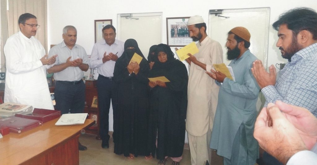 چو ہدری محمد ذکاء اشرف کا مرحوم گارڈ علی اکبر شاہ کے ورثاء سےاظہار تعزیت